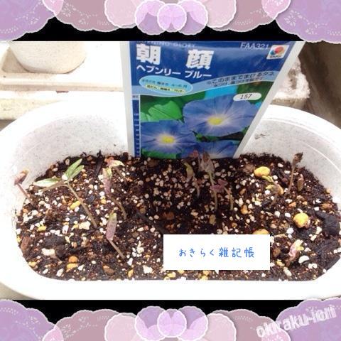 朝顔(ヘブンリーブルー)の芽が出た♪